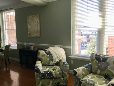 An incredible 875 sq ft furnished one bedroom/one bathroom condo with large open dining and living room and fold out sofa is located on top (fifth) floor of the Georgian. It includes full-service accommodations, including exquisite Five Star Egyptian cotton sheets and linens, Wi-Fi, large screen TV, fully furnished living room, dining room table for four, washer, and dryer, and full kitchen with granite countertops, coffee maker, plate and cookware. Hardwood floors run throughout the main living and dining room of this penthouse suite, with a carpeted bedroom and tiled bath. The entire Condo has 9 foot ceilings with elaborate crown molding, neo-classical architecture and large “period” windows offering sweeping views of the City Hall Clock Tower and Downtown. Our Condo also includes a covered, gated, complimentary parking space at the Courthouse next door. This is truly one of Athens’ premier residences.